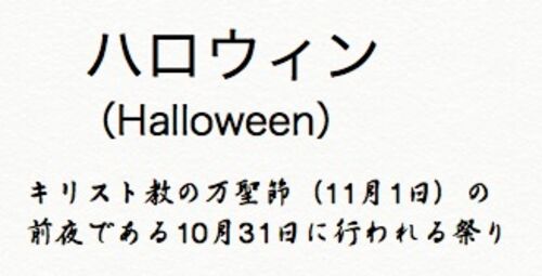 (私が運営している中学生向けのメールマガジンから抜粋して、記載します。) ハロウィンの起源と由来 ハロウィン、あるいは、ハロウィーン(Halloween)とは、キリスト教の万聖節(11月1日)の前夜(イブ)である10月31日に行われる祭りです。 万聖節(All …